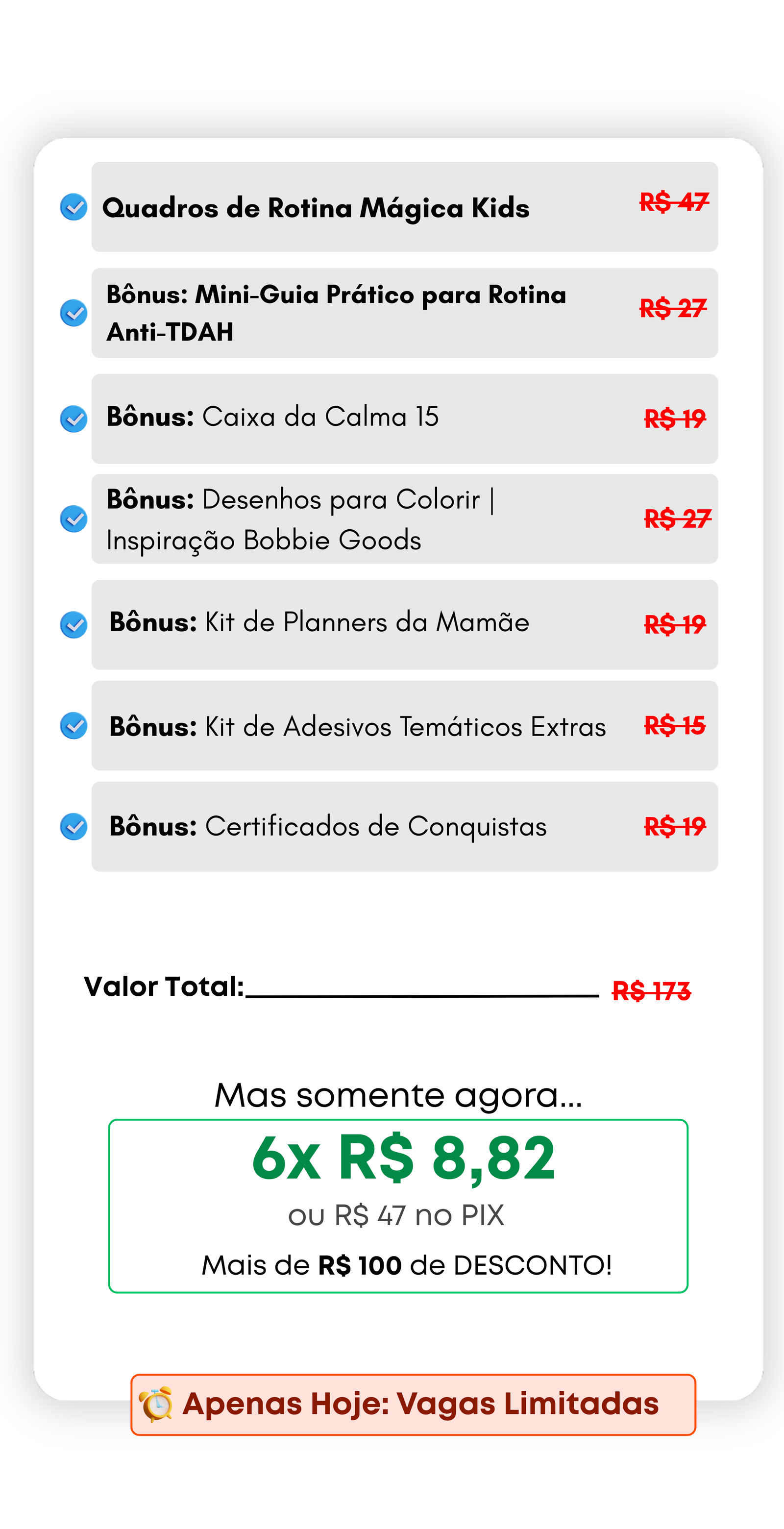 Insira seu filho na dinâmica da Rotina Mágica KIDS, que já funciona como uma brincadeira. Eles amam!