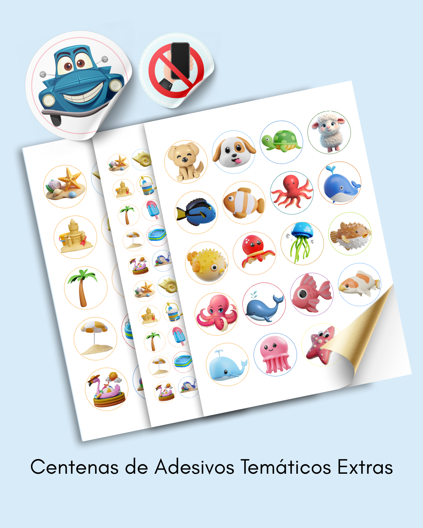 ➡️ Você pode trocar o tema toda semana (são centenas de adesivos colecionáveis).
